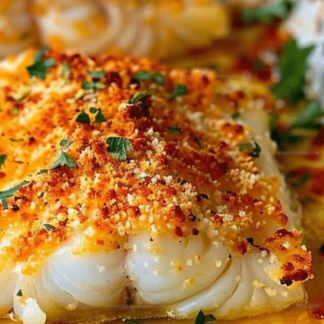 Mediterranean-inspired Parmesan Baked Cod delivers a succulent seafood experience with crispy herbed crust and delicate flaky fish. Elegant dinner guests will savor this simple yet sophisticated coastal dish that brings Mediterranean flavors right to your plate.