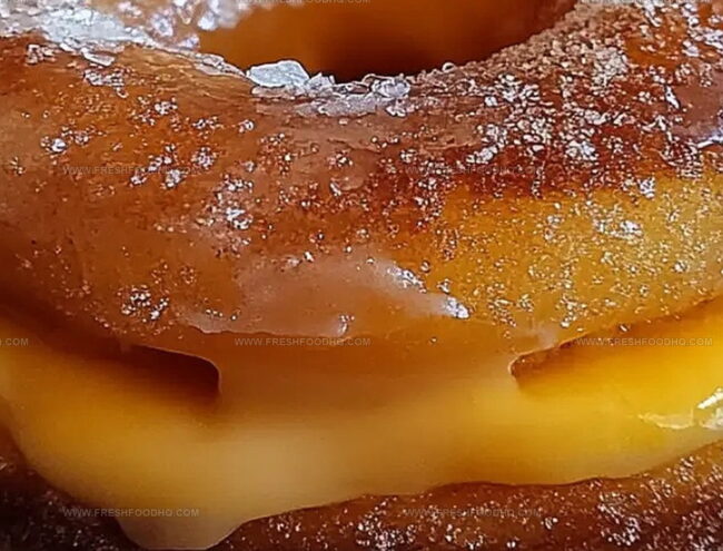 Sweet summer dreams come alive with peach cobbler cheesecake-stuffed donuts that merge decadent bakery magic into one irresistible bite.