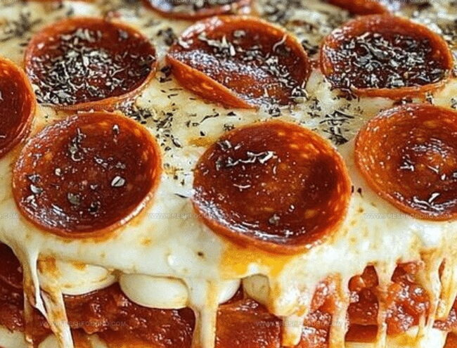 Cheese, marinara, and spicy pepperoni stack into delightful rounds that challenge everything you know about dessert structures.