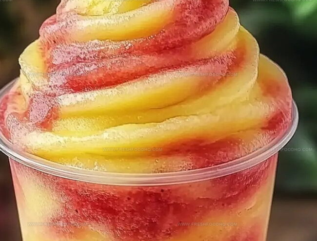 Pineapple strawberry swirled slushies blend tropical paradise with sweet summer refreshment. Cool waves of fruity goodness dance across your palate, promising pure bliss in every icy sip.