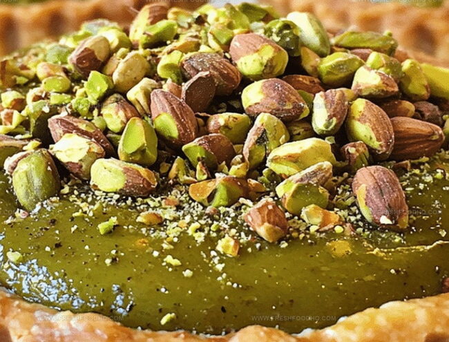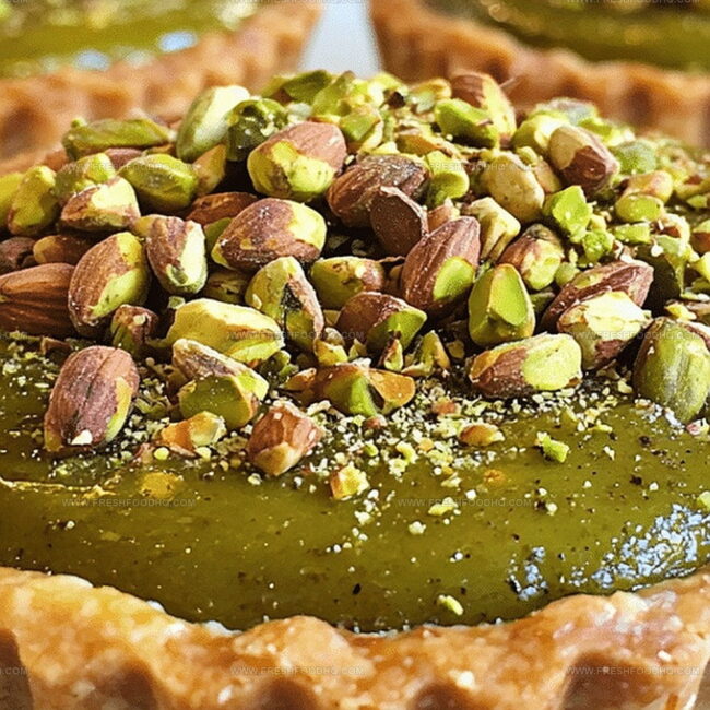 Delicate Pistachio Tartlets offer a luxurious French-inspired dessert dancing with nutty richness and elegant pastry. Crisp buttery shells cradle smooth pistachio cream, inviting you to savor each delightful Mediterranean-inspired bite.