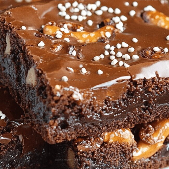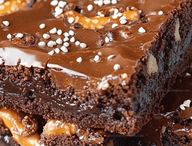 Crunchy pretzel layers create an unexpected twist beneath rich, fudgy chocolate goodness.