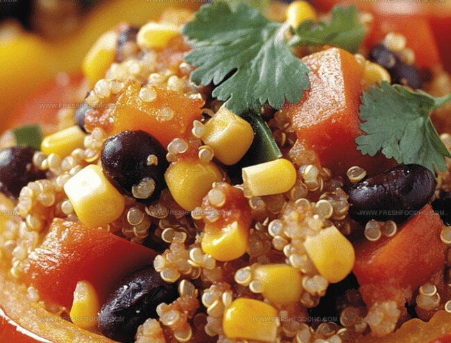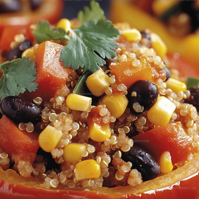 Mexican-inspired Quinoa and Black Bean Stuffed Peppers deliver a wholesome fiesta of flavors packed with protein and zest. Colorful bell peppers cradle a savory mixture that promises a delightful meal you can savor with complete satisfaction.