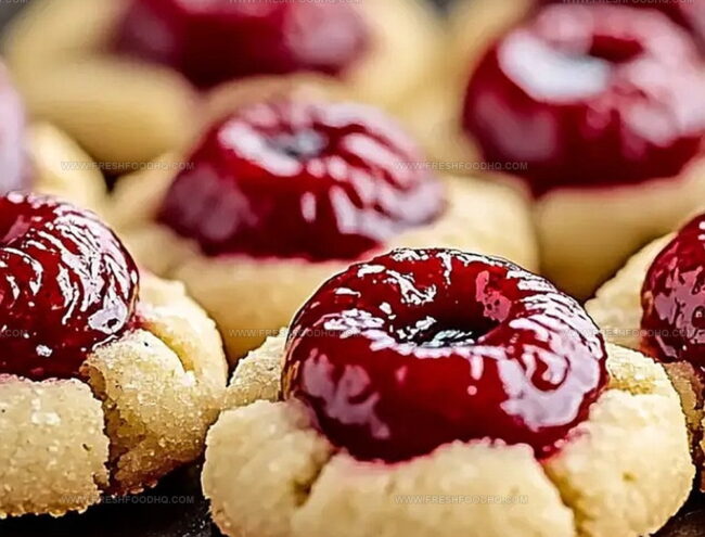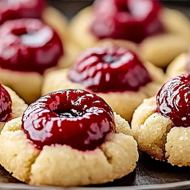 - Create gentle wells in the center of each cookie using your thumb or the curved side of a spoon, forming perfect reservoirs for the fruity filling.