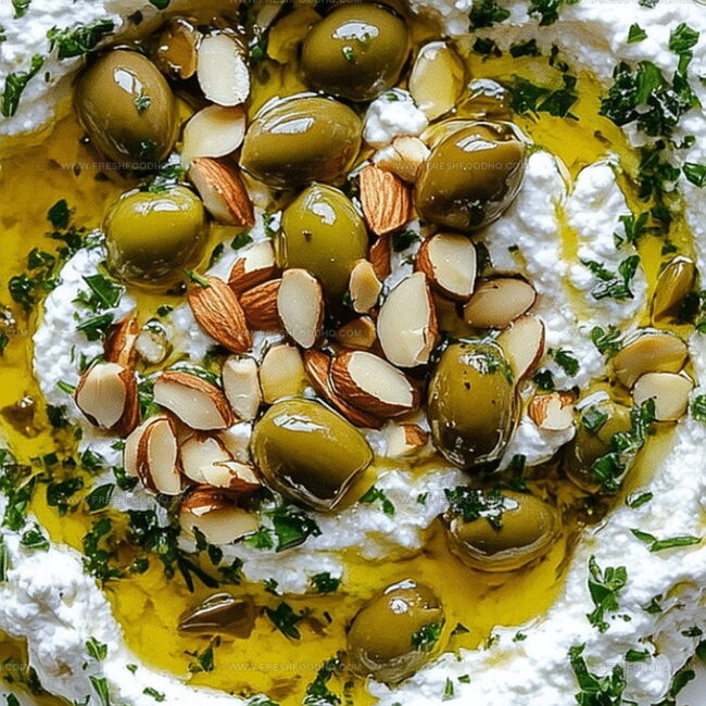 Cheese Base:Flavor Enhancers:Seasoning:How To Make Ricotta Dip With Sicilian Olives And Toasted Almonds