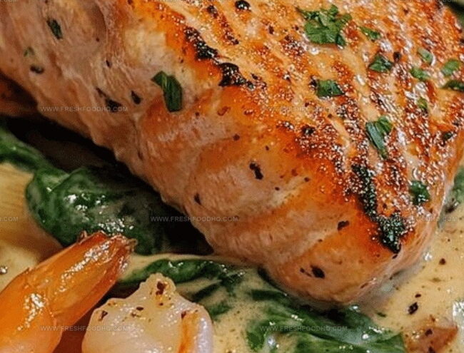 Luxurious Salmon & Shrimp Penne combines Mediterranean flavors in a creamy garlic spinach sauce that dances with delicate seafood. Seafood enthusiasts will savor each forkful of this elegant pasta, where fresh ingredients create a symphony of coastal culinary perfection you can’t resist.
