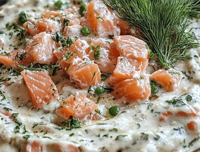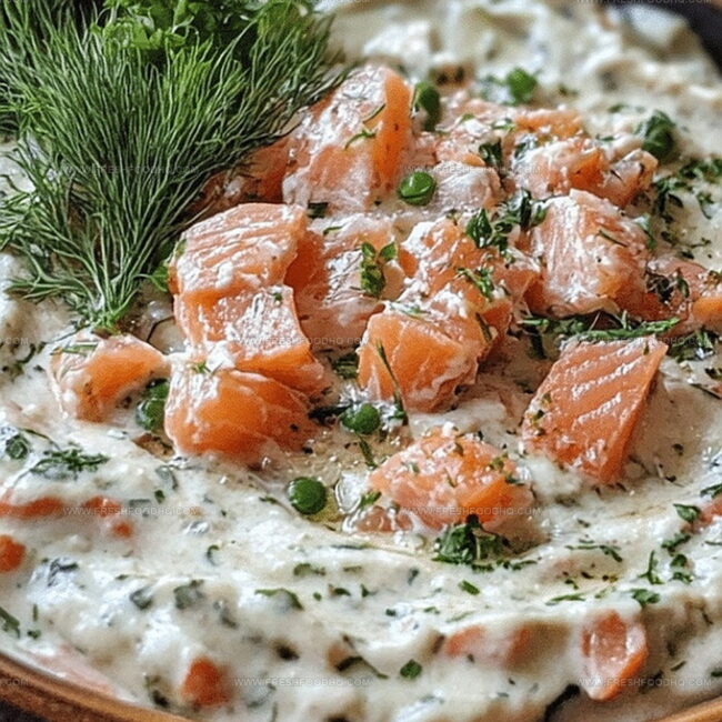 Creamy “Smoked Salmon Dip” blends rich Atlantic salmon with tangy cream cheese and zesty herbs for an elegant appetizer. Guests will devour this luxurious spread, perfect for parties or quiet weekend snacking with crisp crackers.