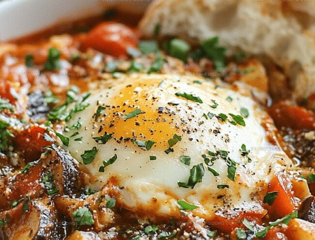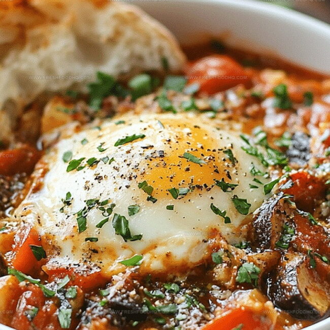Sizzling Spicy Eggplant Shakshuka brings Middle Eastern comfort to your table with bold, fiery flavors. Hearty ingredients meld together, creating a rich breakfast experience that lingers deliciously on your palate.