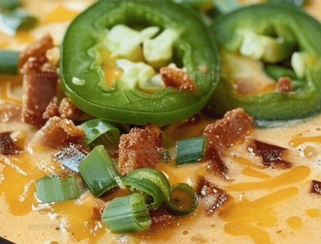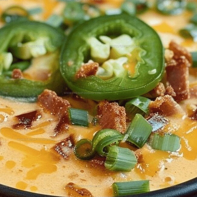 - Ladle the hot soup into serving bowls, garnishing with reserved crispy bacon pieces, additional shredded cheddar cheese, and thinly sliced fresh jalapeno rings for extra heat and visual appeal.