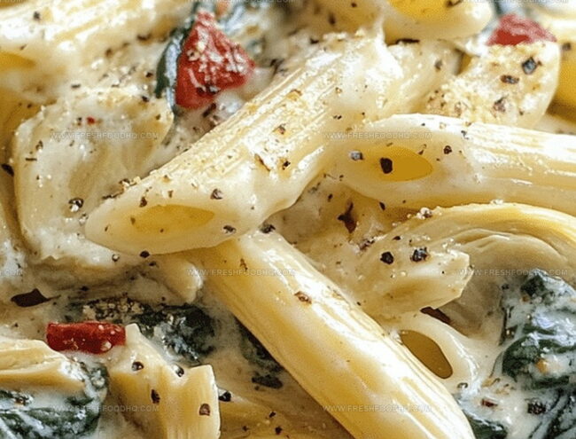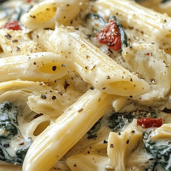 Creamy spinach artichoke pasta brings Mediterranean comfort straight to your kitchen. Rich cheeses and tender vegetables create a harmonious blend that delights palates and satisfies hearty appetites in one delicious meal.