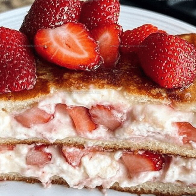 Heavenly strawberry cheesecake stuffed french toast combines creamy cheesecake filling with golden-brown bread, creating a breakfast masterpiece that elevates morning indulgence. Sweet strawberries and rich cream cheese nestled between perfectly crisp slices promise pure deliciousness you cannot resist.