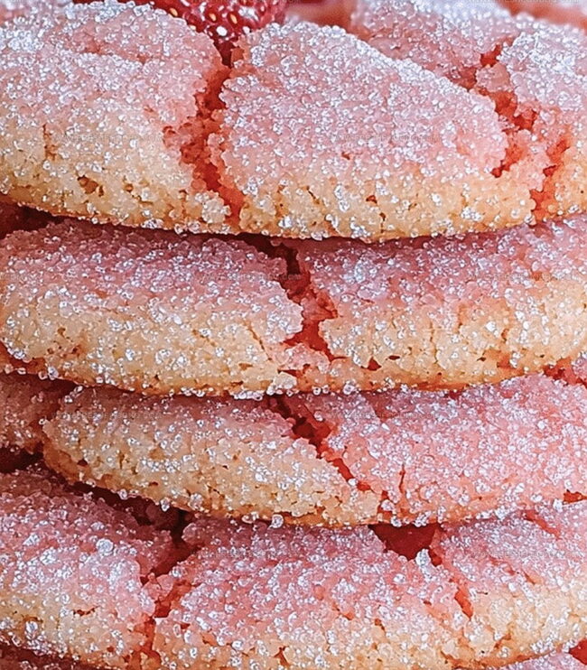 Strawberry Sugar Crinkle Cookies That Melt In Your Mouth