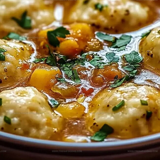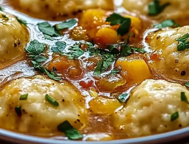 Ladle the steaming soup into bowls, ensuring each serving gets a handful of those dreamy dumplings.