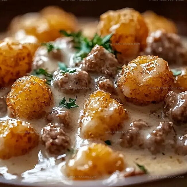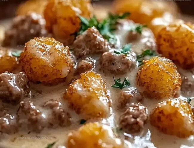 Hearty Tater Tot Breakfast Bowl promises a morning feast packed with crispy potatoes and rich sausage gravy. Comfort breakfast lovers will devour this classic American morning delight that brings warmth and satisfaction to your plate.