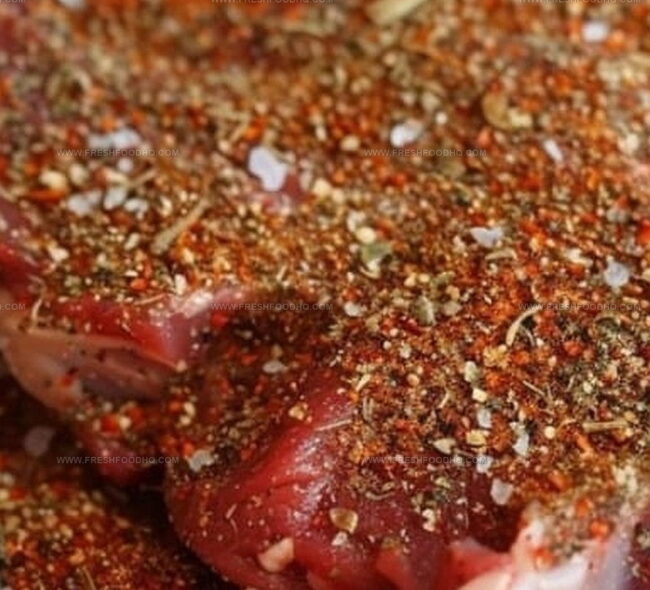 - When ready to cook, the pre-seasoned steak will have absorbed the complex flavor profile of the spice blend, preparing it for optimal grilling or pan-searing at high heat.
