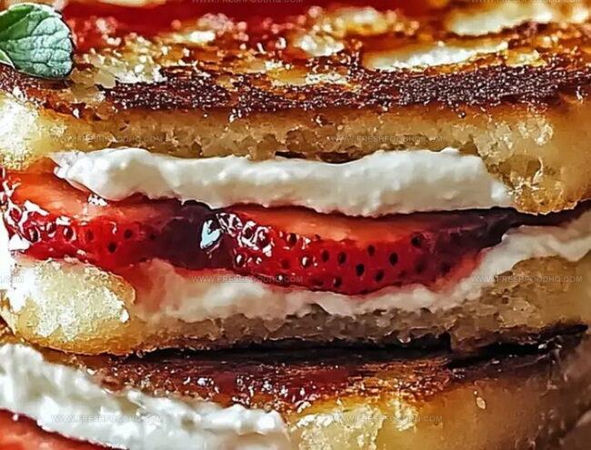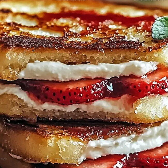 Crispy golden fried strawberry cheesecake sandwiches blend creamy indulgence with unexpected crunch. Sweet summer berries and rich cream cheese deliver a delightful dessert experience you won’t forget.