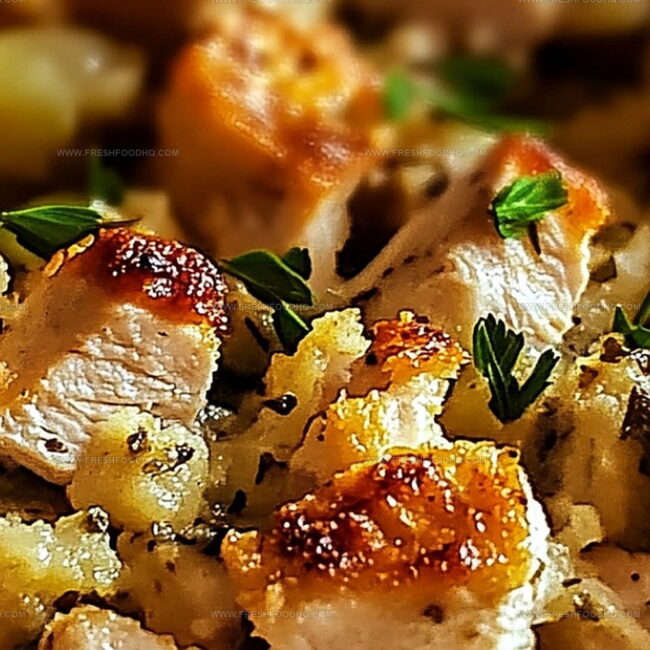 - Generously distribute the dry stuffing mix across the top of the sauce-covered chicken, creating a uniform layer for consistent texture.