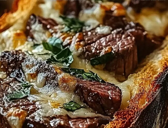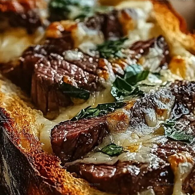 Garlic cheese bread elevates classic steak into a mouthwatering comfort classic that promises pure culinary bliss. Melted cheese, perfectly seasoned steak, and crispy bread edges combine to create an irresistible dish you’ll crave again and again.