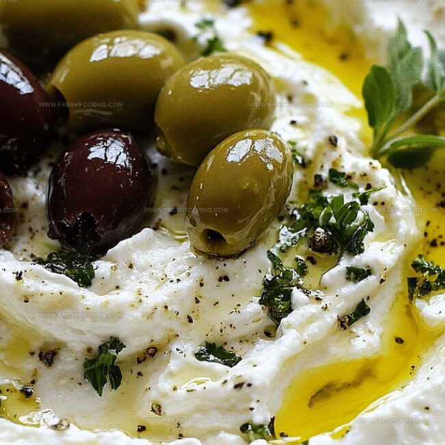 Cheese Base:Flavor Enhancers:Garnish and Topping:How To Make Whipped Feta With Tangy Olives Recipe