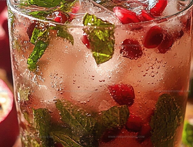 Cool Caribbean cocktails meet winter’s warmth in this winter pomegranate mojito, blending tart pomegranate seeds with crisp mint and smooth rum. Sparkling refreshment awaits when silver rum, fresh lime, and ruby-red pomegranate dance together in one irresistible glass.